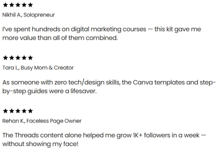 Whether you're camera-shy or prefer automation, the kit teaches you how to grow with faceless Instagram and Threads strategies. Learn to build a personal brand — without being personal.